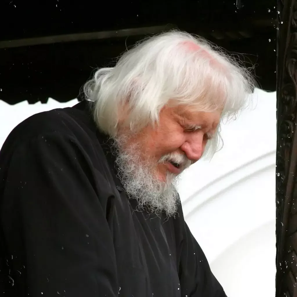 Cineva m-a împins în față. „Să iei binecuvântare!”. L-am văzut atunci venind, gârbovit, sprijinindu-se de brațul unui monah mai tânăr, pe Părintele. Bătrân cât lumea. Sau poate că așa vedeam cu mintea mea de copil. Nu îi vedeam ochii, doar zâmbetul larg pe toată fața. Și pășea nemăsurând pământul. Pășea plutind. Era Părintele Teofil Părăian. În mintea mea de copil, n-am gândit decât că omul ăsta sigur e om bun.