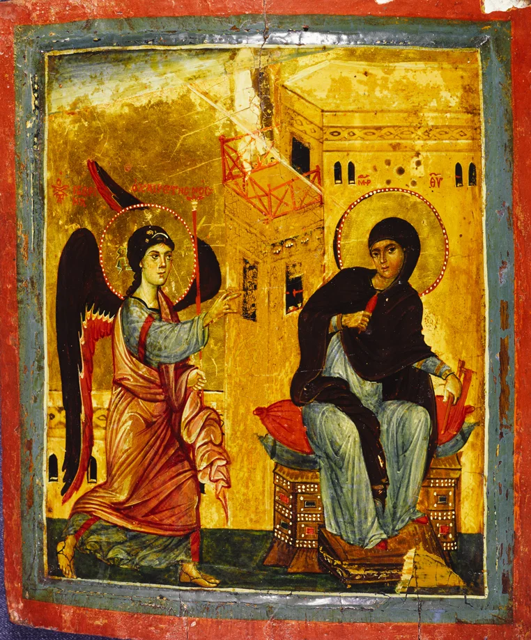 După ce arhanghelul i-a vorbit astfel, Fecioara Maria chibzuia întru sine de unde vine această închinăciune, și se gândea: „să fie oare necuvioasă şi desfrânată, ca de la un bărbat către o fecioară, sau dumnezeiască?”. Se întreba, adică, dacă această urare venea de la un om pătimaș sau dacă era de la Dumnezeu, de vreme ce era însoțită și de cuvintele „Domnul este cu tine”.