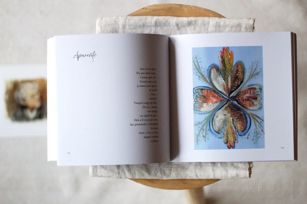 Citisem în Pridvor câteva poezii cu care rezonasem mult și eram tare curioasă cum arată albumul, căci, neputându-l răsfoi online pe nicăieri, așteptam cu nerăbdare copilărească pachetul cu cărți. Comandasem de mai multe zile câteva exemplare (doar opt, pentru început) și-mi puneam tot felul de întrebări. Oare cum voi percepe poeziile adunate într-o carte, dacă în Pridvor mi-au plăcut atât de mult? Și cum arată, totuși, ilustrațiile doamnei Cosmina Dragomir?