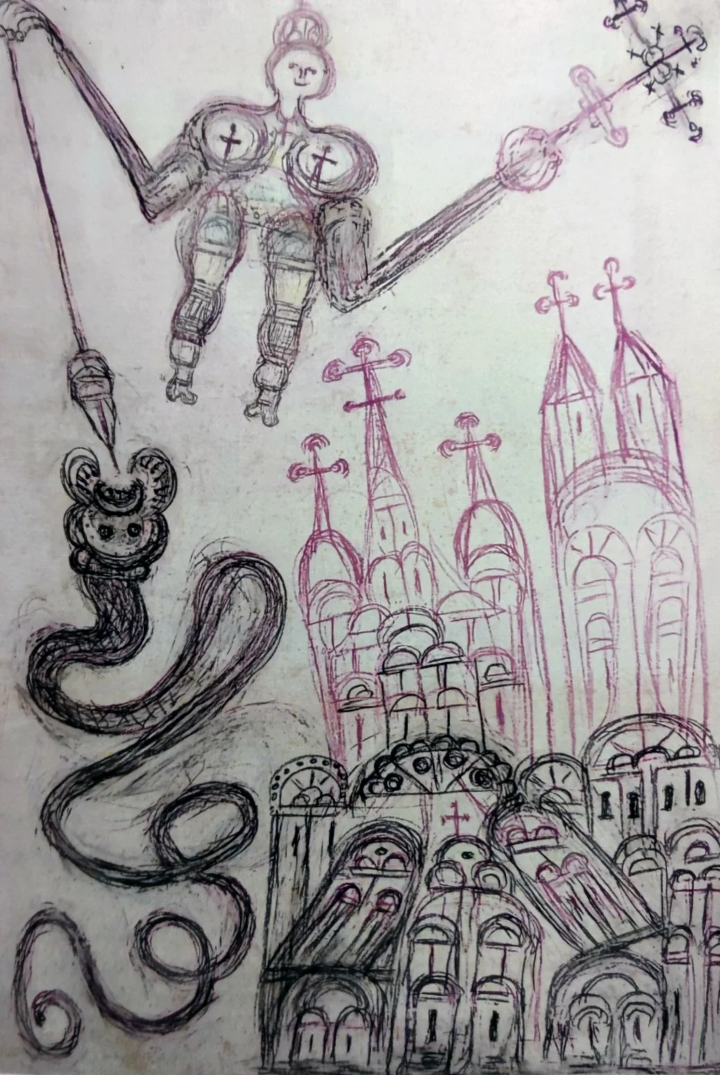 Desenele Cuviosului aparțin unei experiențe reale. Ele pot fi citite ca o rugăciune apocrifă, scrijelită pe marginea unei Apocalipse necunoscute. Originea lor nu este în imaginar, ci într-o confruntare concretă cu răul, în formele sale recognoscibile: ideologie, păcat, dezordine interioară, suferință.