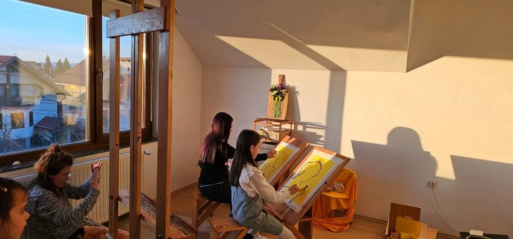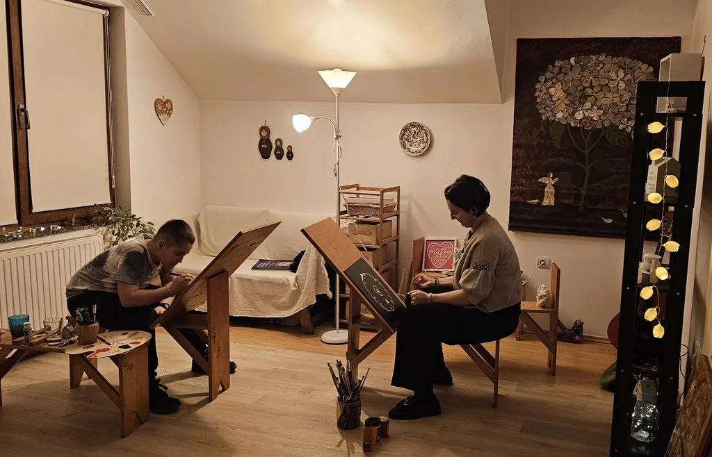 Încă nu aveam atelierul, așa că lucram la demisol sau în curte. Am pus muzică și am văzut că atmosfera asta ne aduce mai aproape. Am continuat! Am adăugat flori și ceva dulce. Și apoi m-am gândit că un astfel de cadru este foarte cald... De ce să nu-l fructific? De ce să nu dăruiesc din ceea ce am primit? Așa că am început…