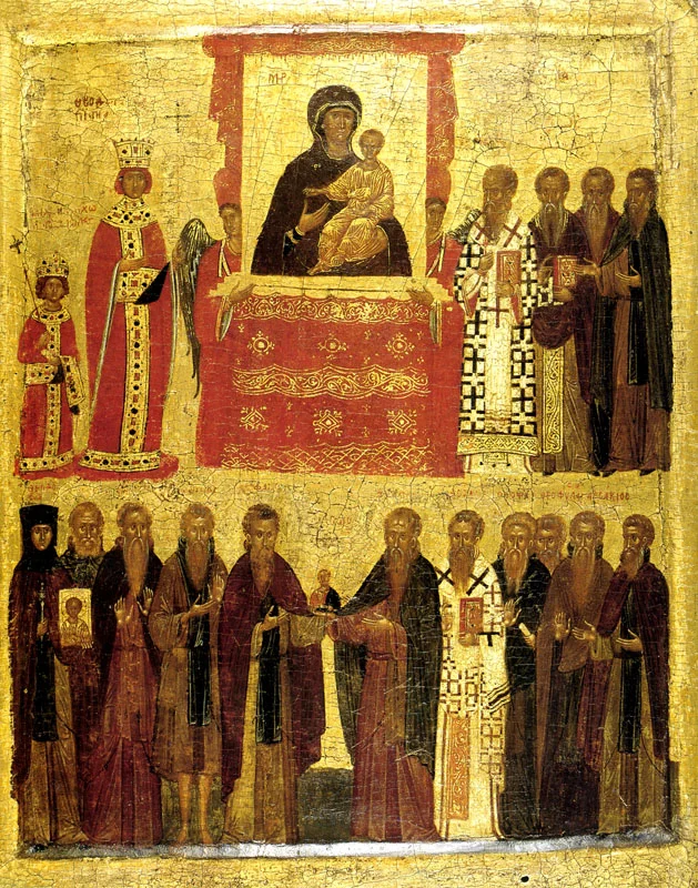 Spre a prăznui reaşezarea icoanelor, Sfânta Teodora a condus un uriaş alai cu icoane pe străzile Constantinopolului, în ziua de 11 martie 843. Era prima duminică din Postul Mare al acelui an. De atunci, Biserica prăznuieşte reaşezarea sfintelor icoane în prima Duminică din Postul Mare, printr-o slujbă cunoscută ca Biruinţa Ortodoxiei asupra ereziilor.