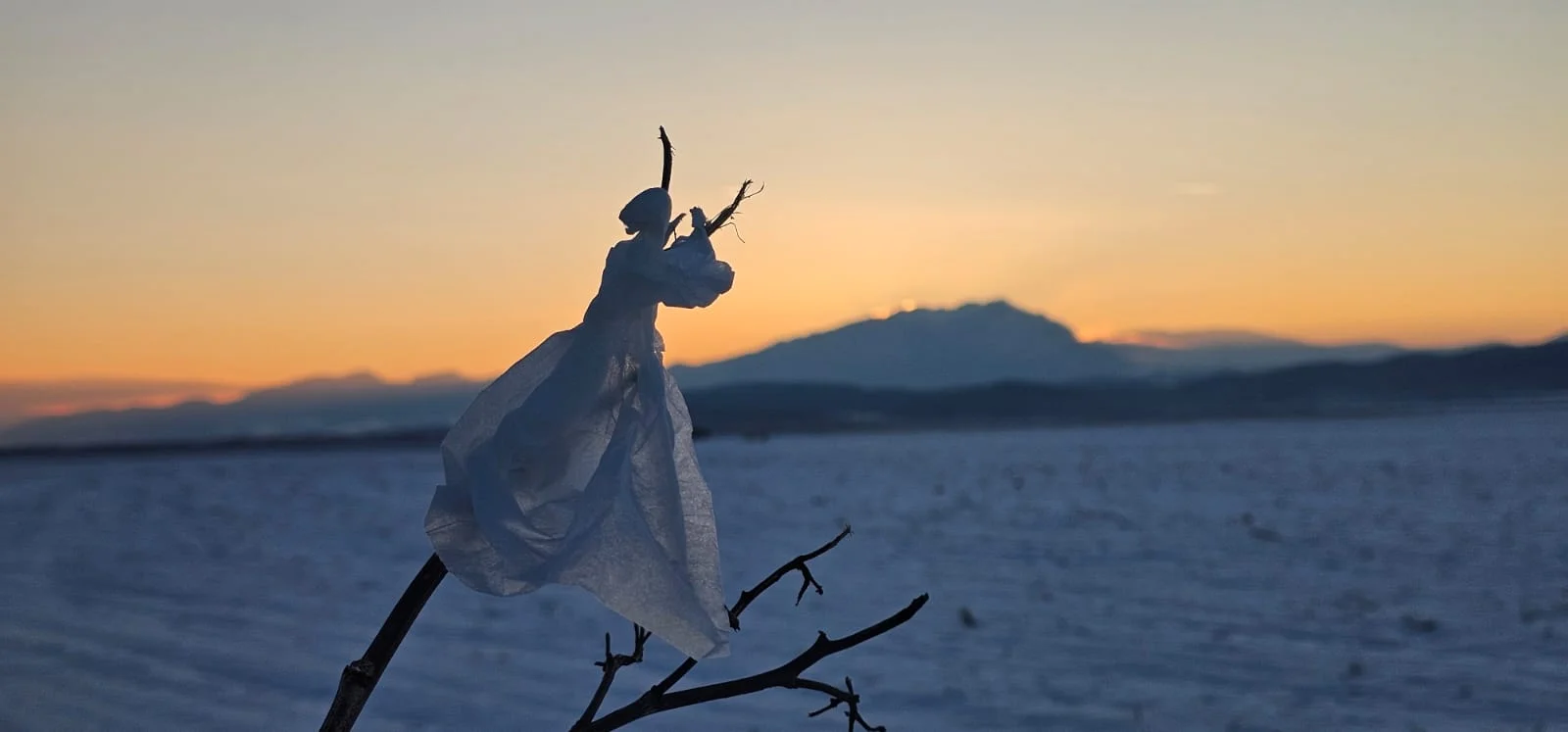 Apusul de soare se lasă surprins în poze, alături de personajul din hârtie... ce poezie.