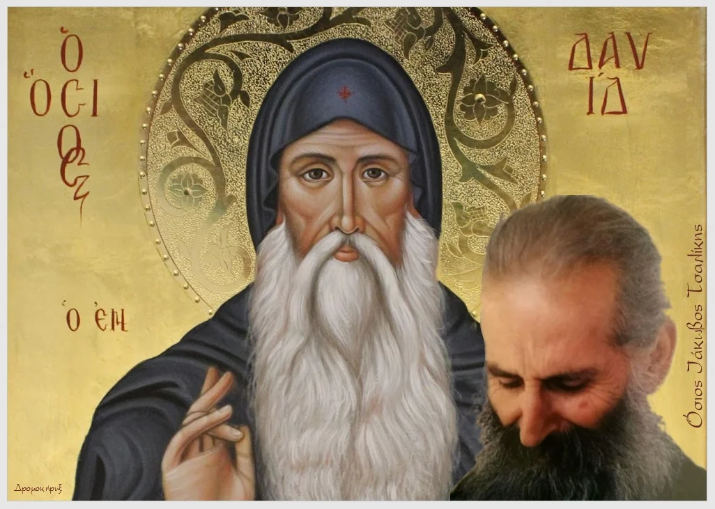 - Părintele meu, după ce m-am rugat fierbinte, Cuviosul David mi-a spus: „Pleacă-ți capul, coboară-ți privirea”. Și, făcându-mi semn că voi afla apă, adăugă: „Înaintează!”.