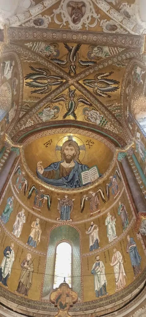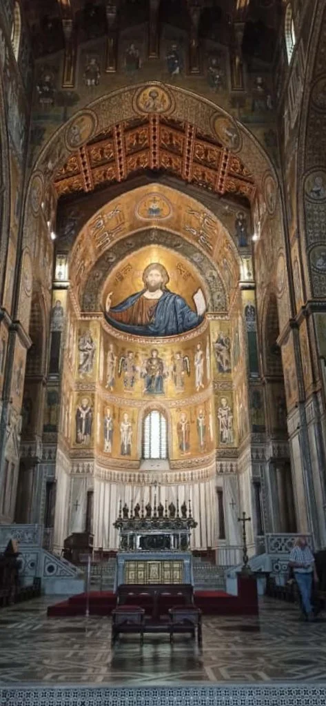 Tot Sicilia adăpostește și cele mai frumoase mozaicuri bizantine. Monreale nu cred că mai are nevoie de multe prezentări. Asemenea Constantinopolului și Ravenei, a fost un mare centru cultural bizantin, centru eclezial puternic, situat la doar 8 kilometri de Palermo, capitala regatului normand în secolele XI-XII. Catedrala adăpostește cea mai mare suprafață de mozaic bizantin din lume: peste 6.000 m pătrați! Arhitectura îmbină trei stiluri: normand, arab și bizantin.